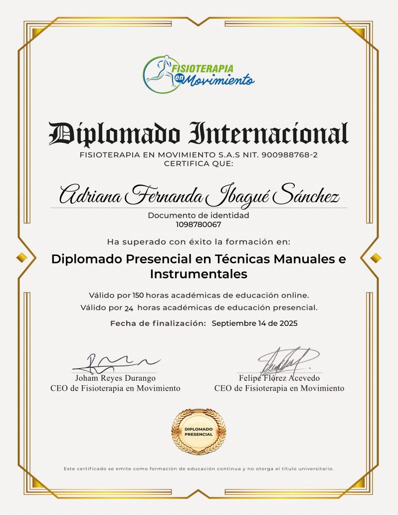 ¿Cuáles son las especialidades principales de Adriana Ibagué Sánchez?Adriana Ibagué Sánchez es Fisioterapeuta. Te mostramos algunos de los servicios que ofrece gracias a su trayectoria y su amplia experiencia: Programa de flexibilidad, Ejercicio Dirigido, Consulta en línea, Drenaje linfático manual, Masaje terapéutico, Visita domiciliaria Fisioterapia, Terapia vestibular, Acondicionamiento Físico, Tratamiento para la cefalea tensional, Consulta Fisioterapia.