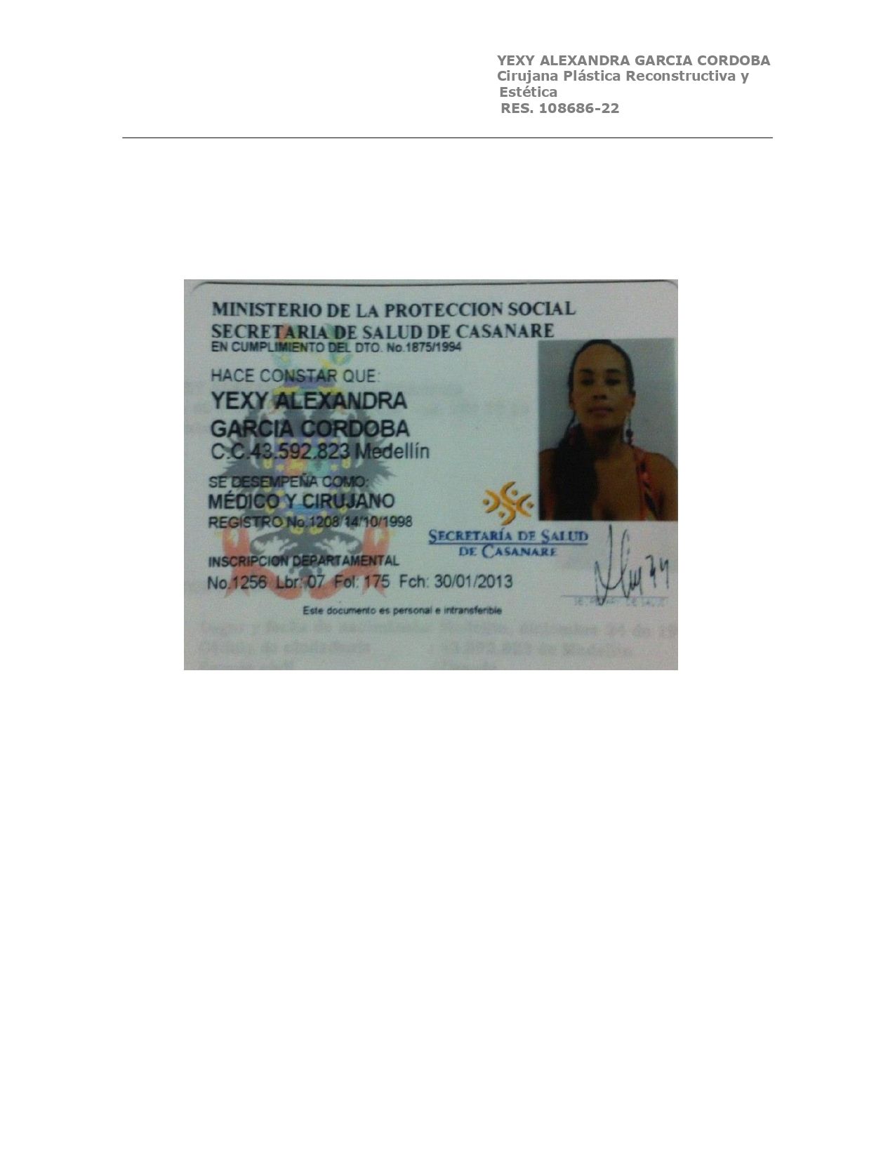 Actualmente ejerzo en Health Care Cirugía Plástica SAS en Yopal, y atiendo pacientes en Medellín, Yopal y Bucaramanga, así como personas que viajan desde diferentes ciudades del país para realizar sus procedimientos.