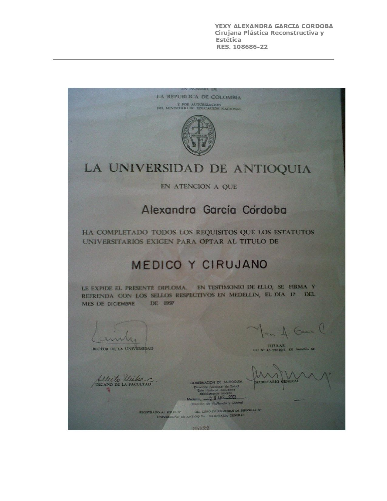 Soy médica cirujana, egresada de la Universidad de Antioquia, con formación de posgrado en cirugía plástica, reconstructiva y estética en la Universidade Brasil. Cuento con más de 12 años de experiencia en el área quirúrgica, brindando atención segura, ética y personalizada a cada uno de mis pacientes.