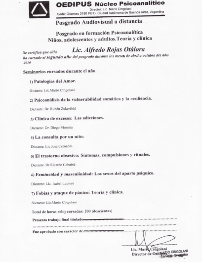• Consultorio privado de Psicología Dr Alfredo Rojas Otálora • Psicoterapia Individual •