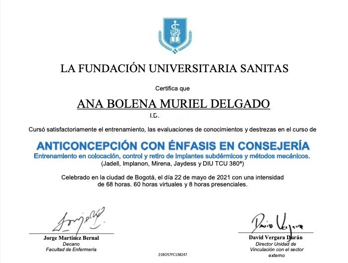 • CONSULTA DRA ANA BOLENA MURIEL CALI • Extracción del DIU •