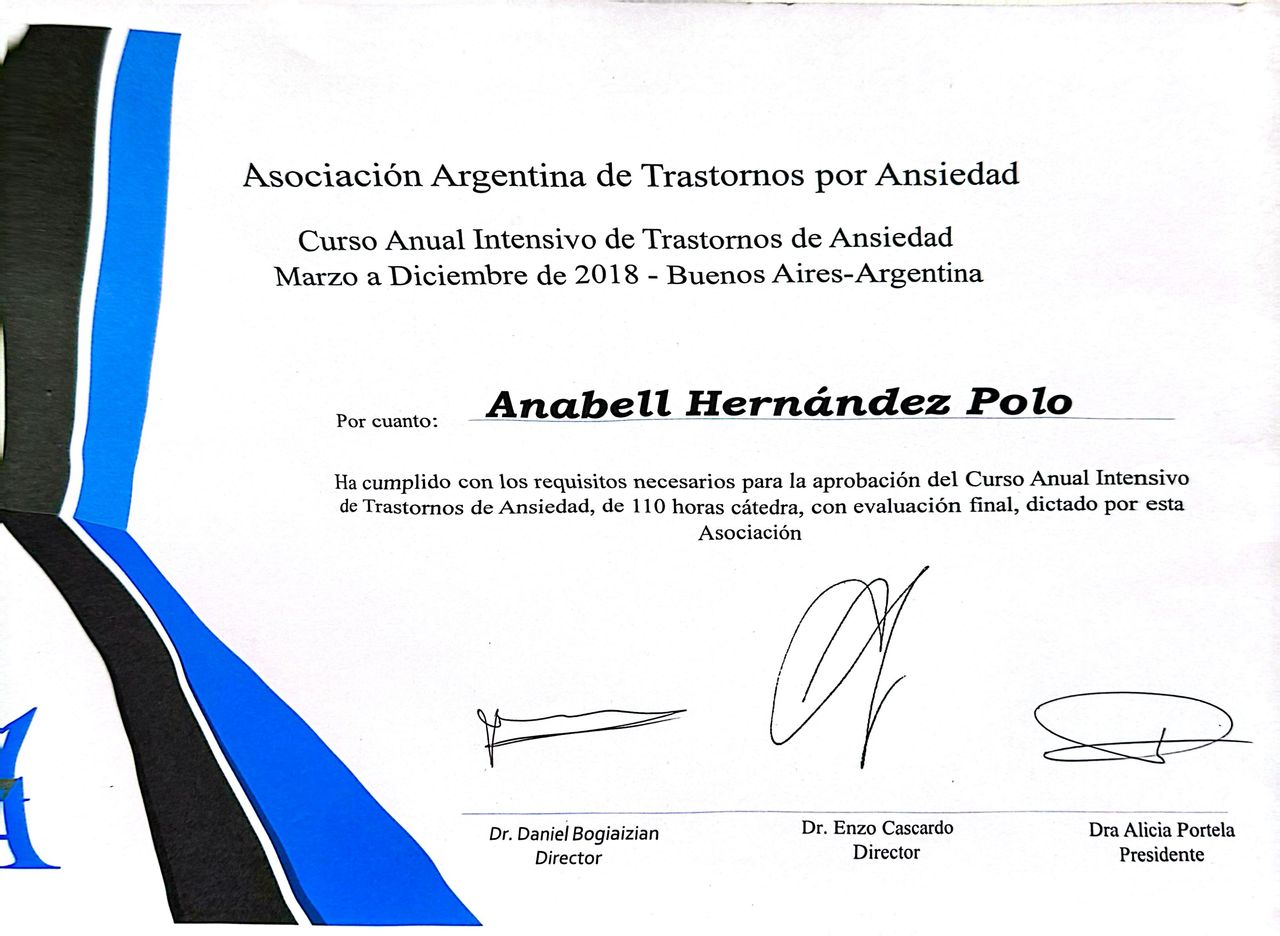 Hoy, gracias a ella, pude manejar mi ansiedad.• Consultorio virtual Dra. Anabel Hernandez Polo - Psiquibienestar • Consulta en línea •