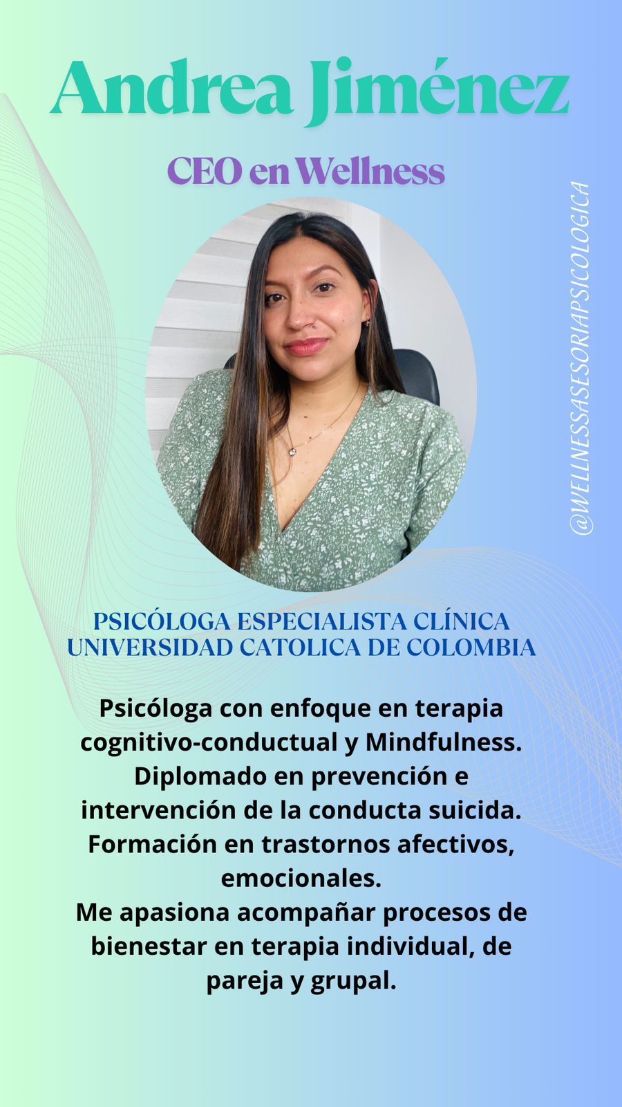 Psicóloga clínica y fundadora de Wellness Asesoría Psicológica.