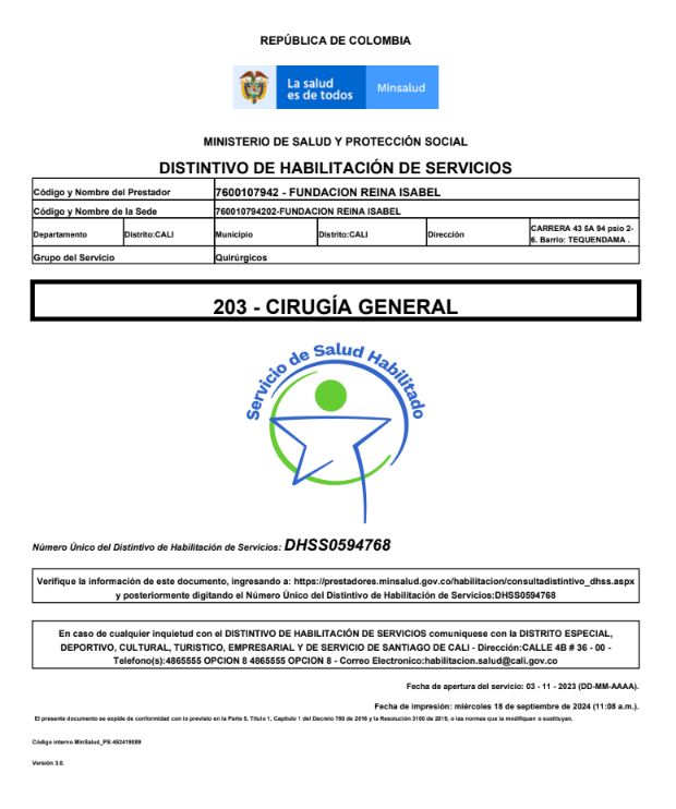 De acuerdo a su consulta. Y también el tratamiento indicado para el malestar . Gracias• Fundacion Reina Isabel • Consulta primera vez cirugía general •