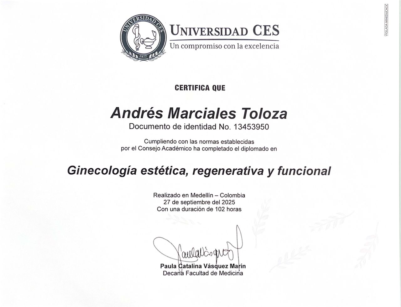COLPOSCOPISTA de la Universidad Militar Nueva Granada, especialista en detección temprana de cáncer de cuello uterino, control y tratamientos para los síntomas y afección causada por ectopias, cervicitis crónica y virus de papiloma humano.