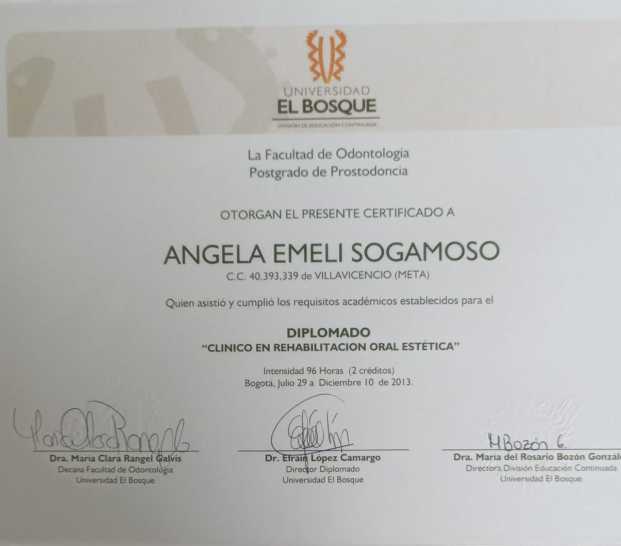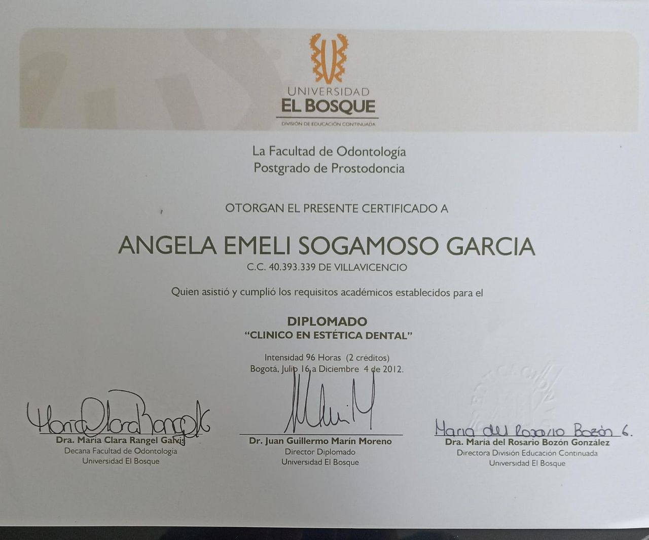 Quiero compartir mi experiencia con la odontóloga Ángela Sogamoso. Como paciente, me sentí muy bien atendida desde el primer momento. Es una excelente profesional, muy dedicada y responsable. Me explicó cada procedimiento con claridad, lo que me transmitió mucha confianza y tranquilidad durante la atención.