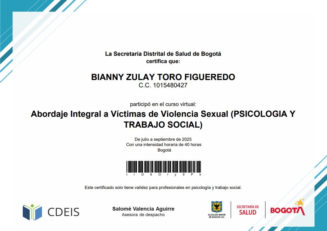 La conozco desde hace tiempo y puedo decir que es una persona muy empática, sabe escuchar sin juzgar y siempre busca la mejor forma de ayudar. Se nota que le apasiona lo que hace y que le importa genuinamente el bienestar de las personas. Es alguien en quien se puede confiar y sentirse cómodo hablando. La recomiendo mucho como profesional.