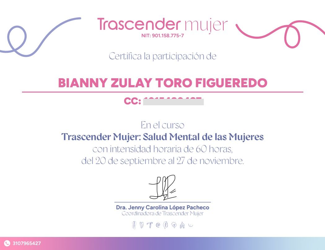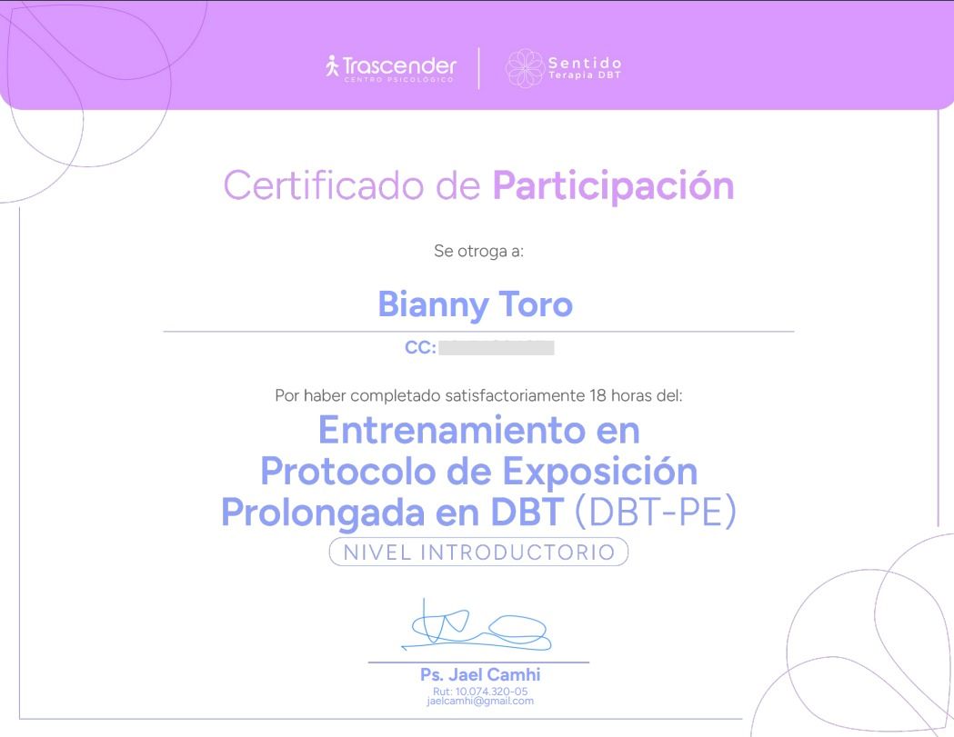 Ps. Bi, además de ser una excelente profesional, es un ser humano genuino y empático. Su acompañamiento me ha permitido comprender mejor mi proceso y encontrarme conmigo misma.