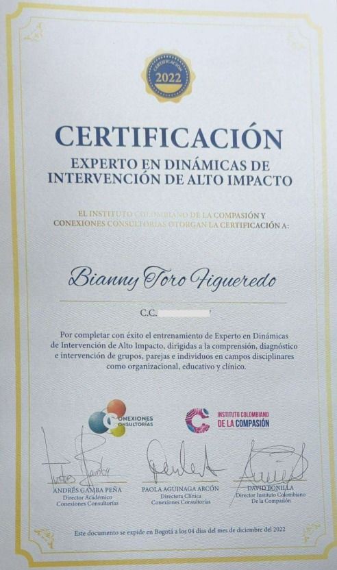 Mi experiencia con Bianny fue muy positiva. Es una profesional empática, cercana y con gran capacidad para escuchar, lo que genera confianza y hace el proceso muy enriquecedor.