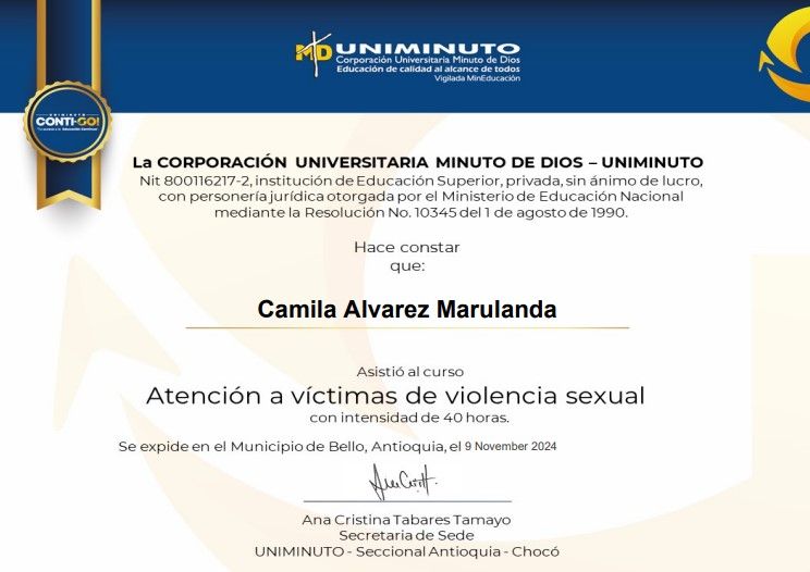 Soy psicóloga profesional con experiencia en acompañamiento emocional e intervención en crisis. He trabajado en contextos hospitalarios brindando apoyo a personas en momentos difíciles, lo que me ha permitido desarrollar una atención empática, humana y respetuosa.