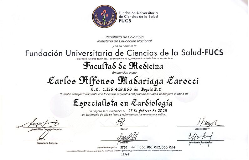 ¿Buscas un especialista que no solo trate síntomas, sino que entienda tu salud como un todo? Soy el Dr. Carlos Madariaga, Médico Internista y Cardiólogo formado en la Fundación Universitaria de Ciencias de la Salud (FUCS). Mi misión es combinar la máxima precisión científica con un trato humano que te haga sentir escuchado y seguro.