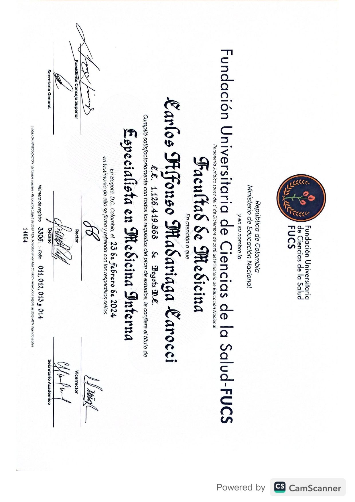 Núm. Colegiado: 1126419868