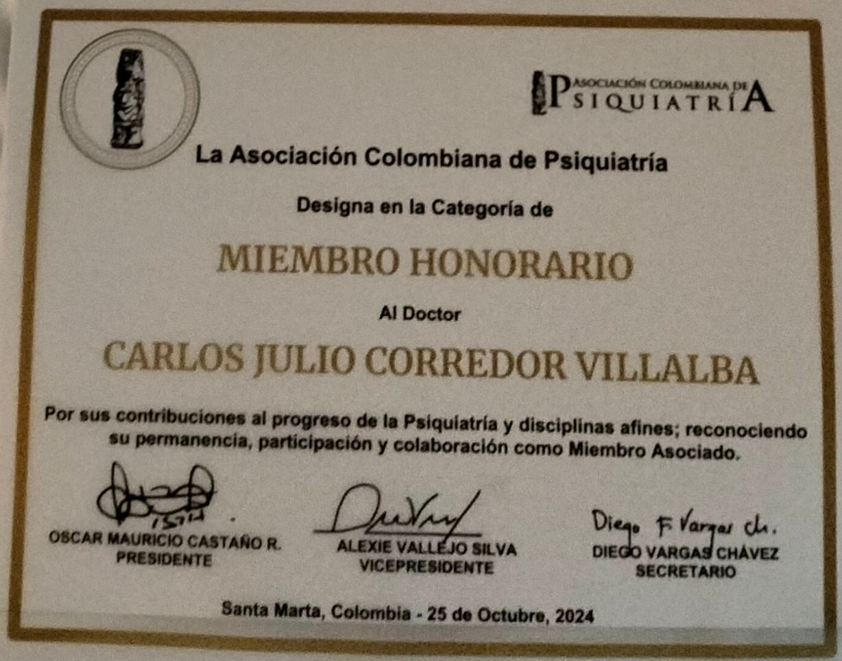 ¿Cuáles son las especialidades principales de Carlos Julio Corredor Villalba?Carlos Julio Corredor Villalba es Psiquiatra. Te mostramos algunos de los servicios que ofrece gracias a su trayectoria y su amplia experiencia: Prevención, manejo y control de estrés, Visita Psiquiatría, Neuropsiquiatría, Consulta psiquiátrica y psicoterapéutica, Tratamiento de trastornos de control de impulsos, Consulta Control Psiquiatría, Valoracion psiquiatria clinica, Consulta psiquiatria adultos, Consulta en línea.