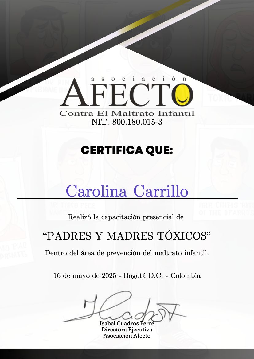 Excelente profesional, carolina ha venido manejando situaciones en mi familia, en las cuales logramos avanzar desde la salud mental, manejo del duelo, terapia de pareja, procesos donde vimos grandes avances, excelentes resultados en cada paciente, la recomiendo por su grandiosa labor y profesionalismo.