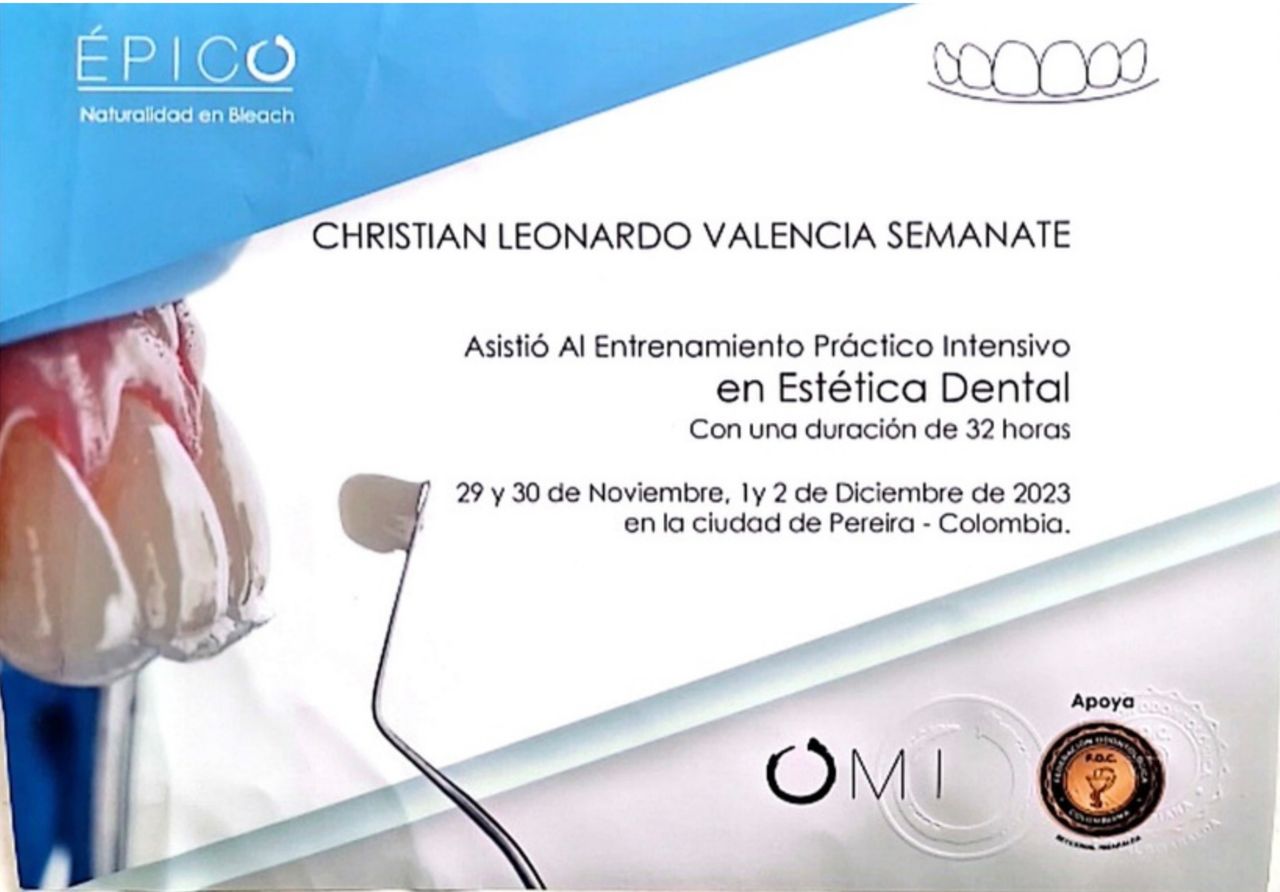 ¿Cuáles son las especialidades principales de Christian Valencia?Christian Valencia es Odontólogo. Te mostramos algunos de los servicios que ofrece gracias a su trayectoria y su amplia experiencia: Visita Odontología, Extracción dental, Consulta Odontología, Biopsia de cavidad oral, Manejo de urgencias odontológicas, Restauración dental, Bichectomía, Blanqueamiento dental, Brackets de autoligado, Carillas dentales.