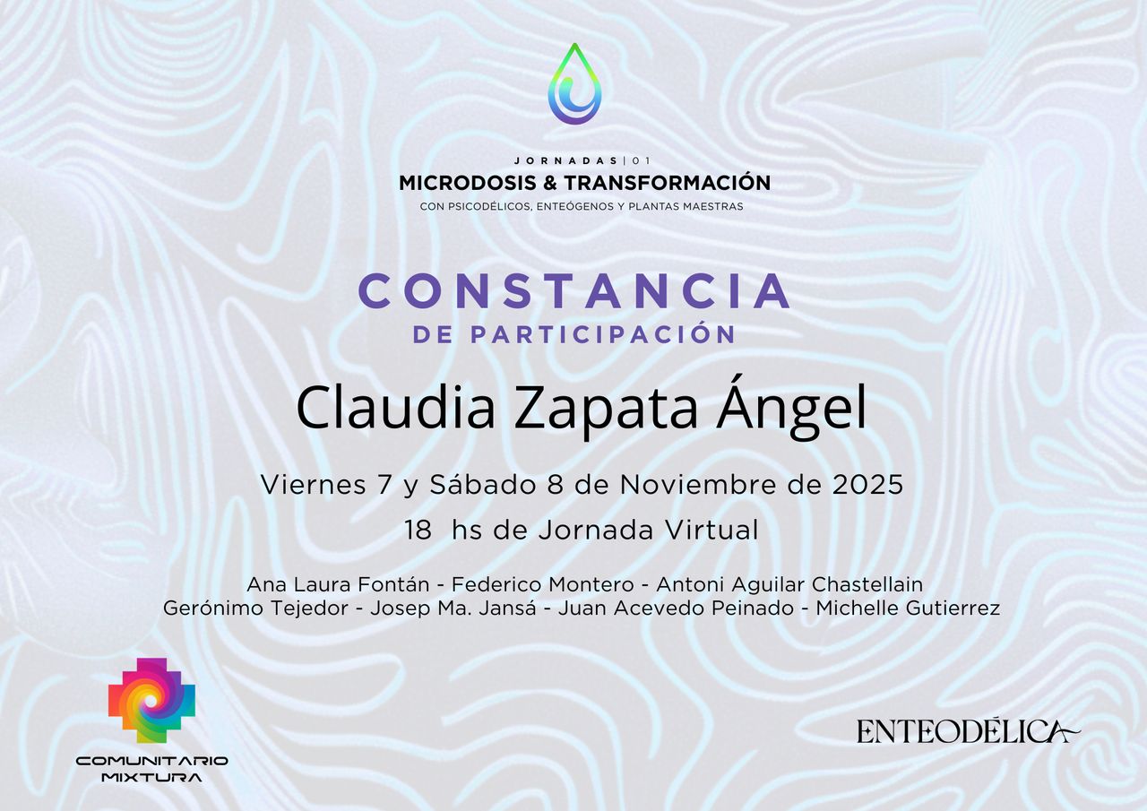 Soy Claudia Zapata Ángel, Médico Psiquiatra con maestría en Terapia Cognitivo-Conductual y subespecialidad en Terapia Asistida con Psicodélicos.