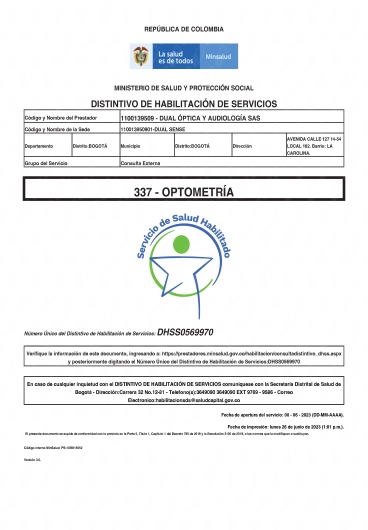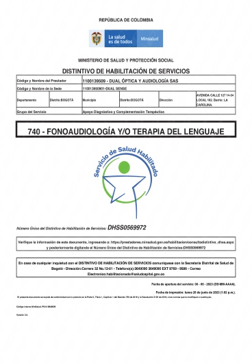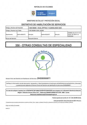 DUAL OPTICA Y AUDIOLOGIA SAS - DUALSENSE