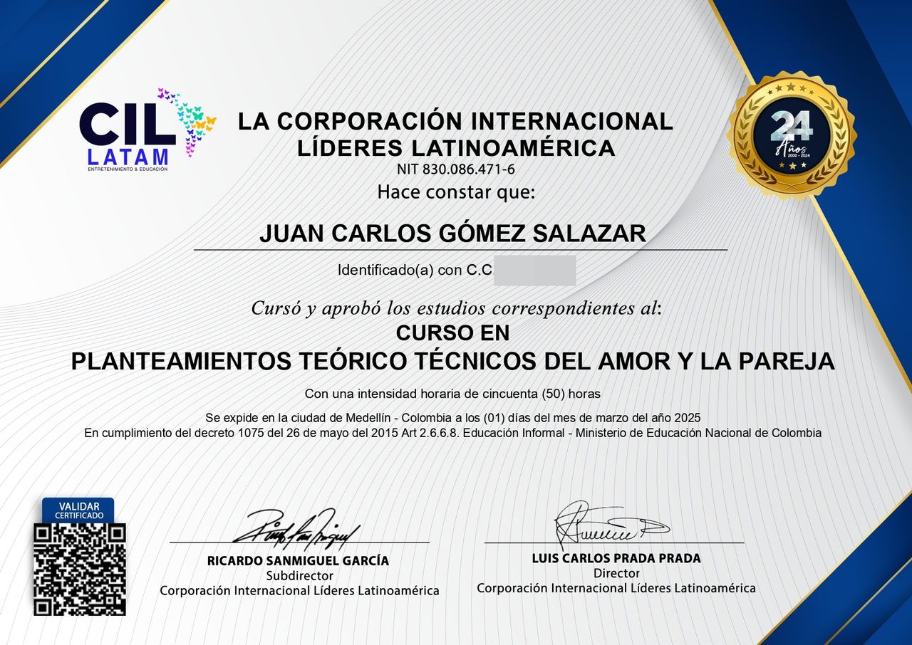 Juan Carlos es un profesional profundamente empático, amable y respetuoso. Tiene una manera de explicar las cosas que hace que todo sea claro, tranquilo y fácil de comprender. Me he sentido acompañada, escuchada y realmente comprendida. Su guía ha significado un cambio muy positivo en mi proceso y he podido entender mejor mi historia y ver mis experiencias desde otra perspectiva, me ayuda a crecer y sanar.
