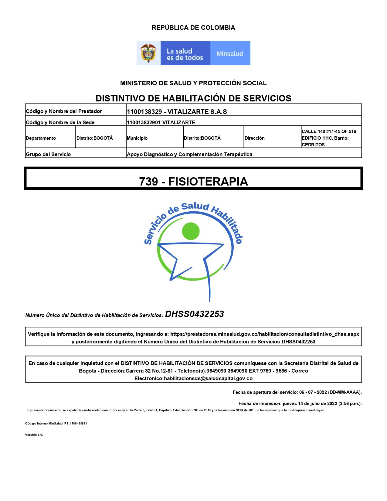 ¿En dónde se ubica Vitalizarte IPS?La dirección de Vitalizarte IPS es Calle 106 #49-15 Bogotá.