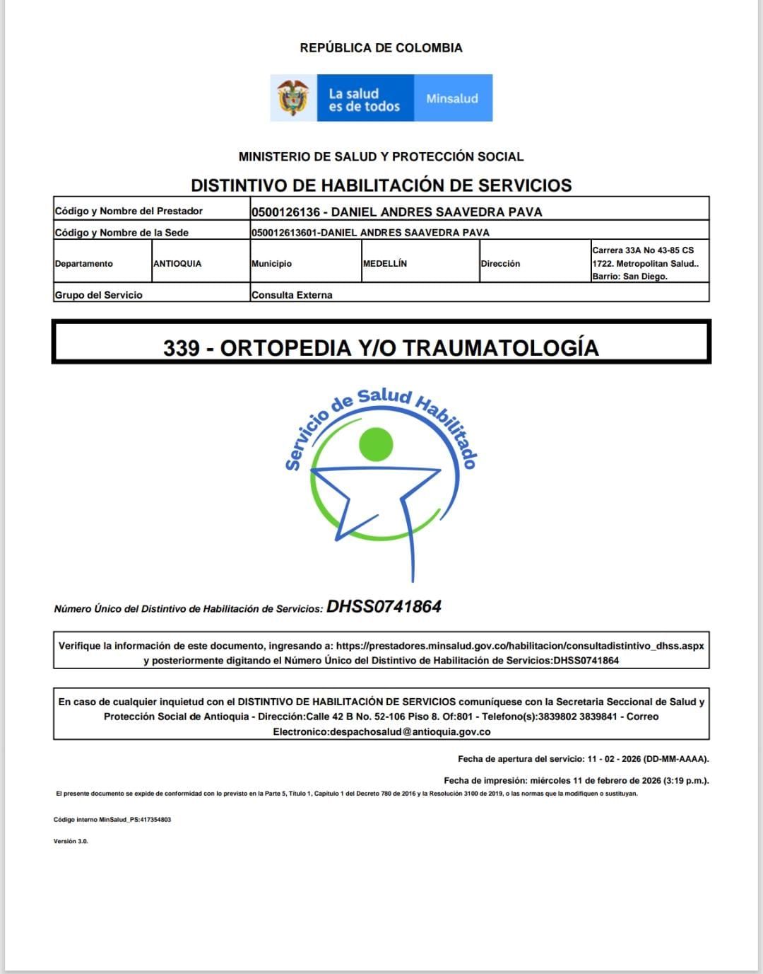 • Dr. Daniel Saavedra • Consulta de Ortopedia y Traumatología •