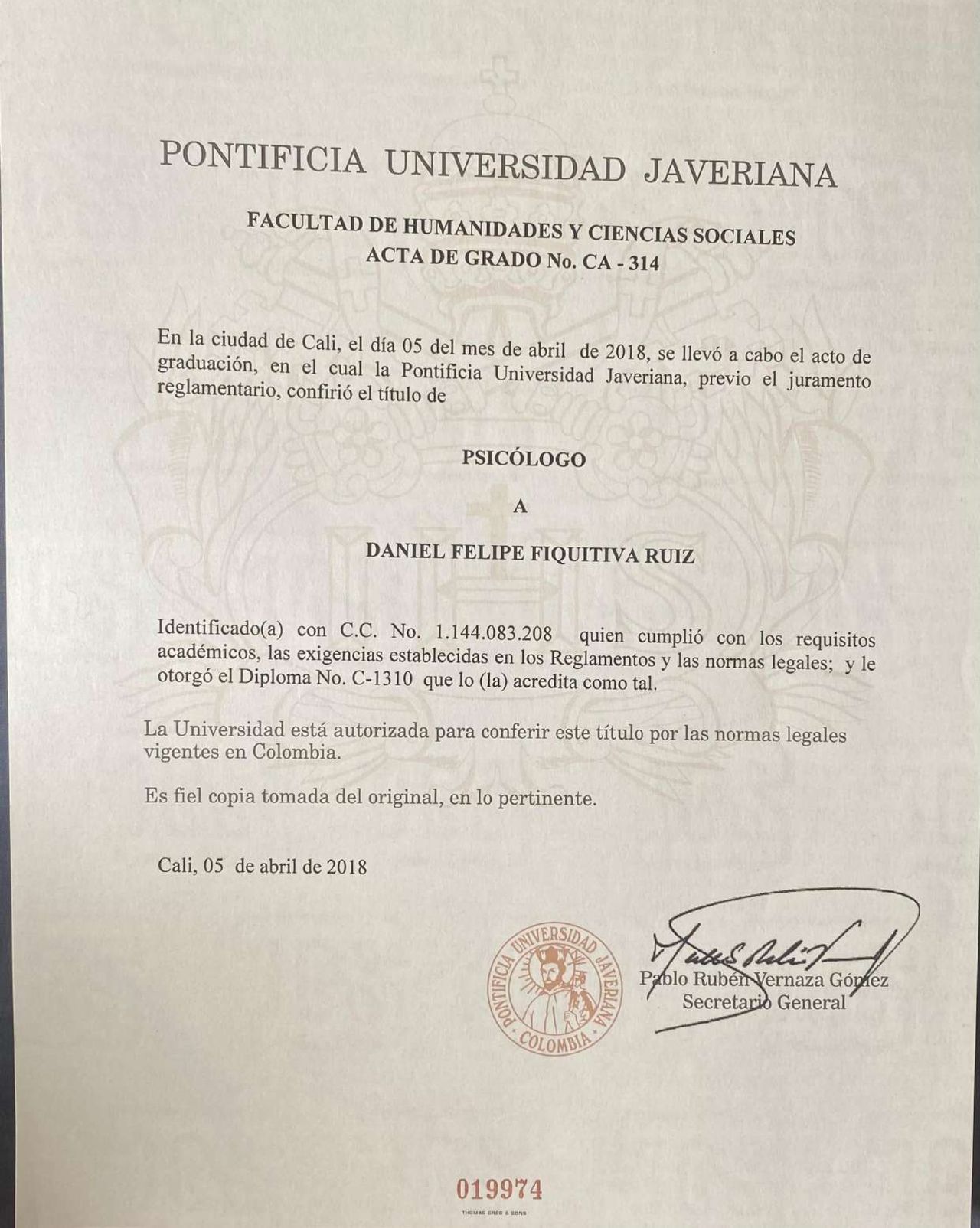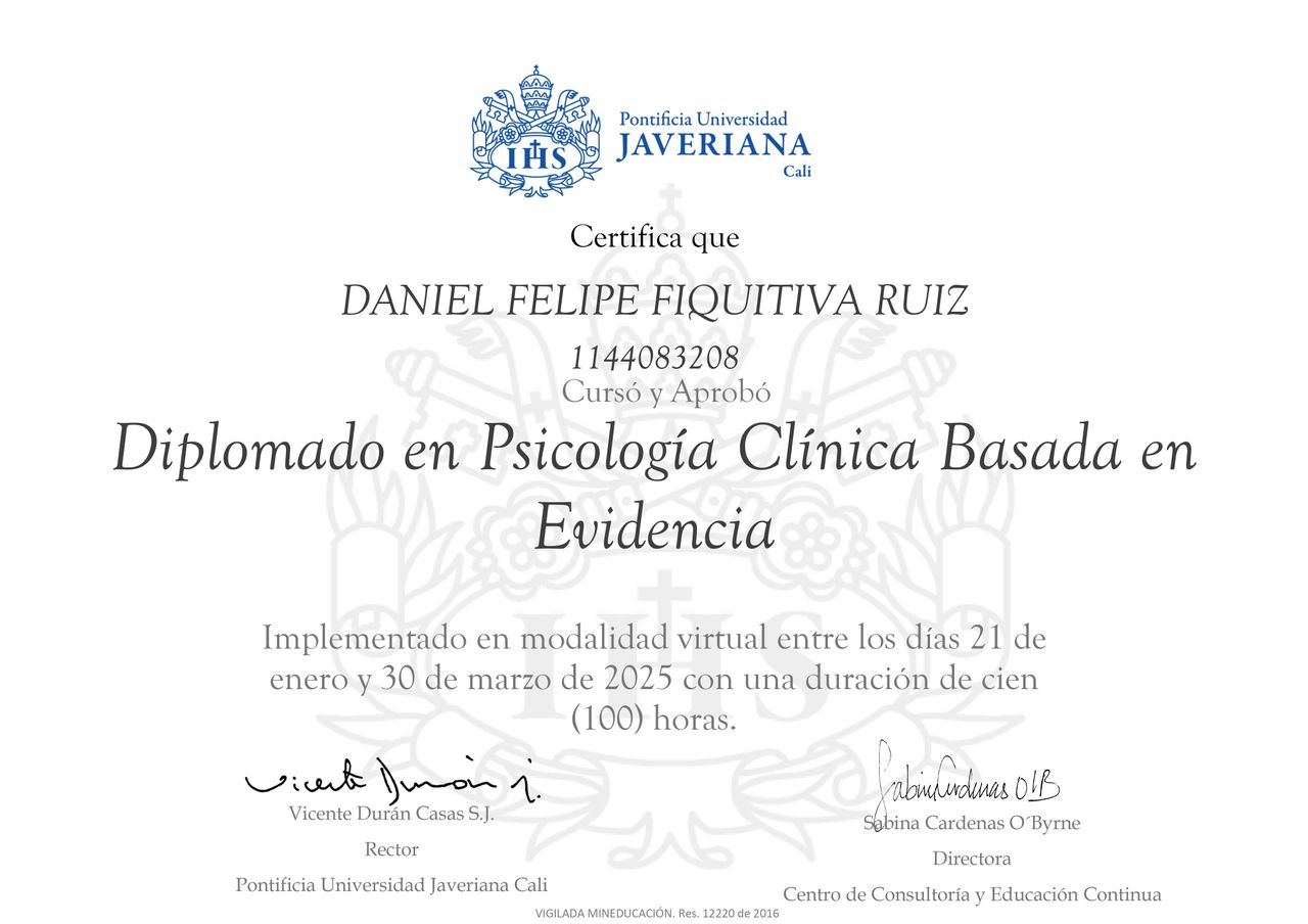 ¿Cuáles son las especialidades principales de Daniel Fiquitiva Ruiz?Daniel Fiquitiva Ruiz es Psicólogo. Te mostramos algunos de los servicios que ofrece gracias a su trayectoria y su amplia experiencia: Psicoterapia virtual.