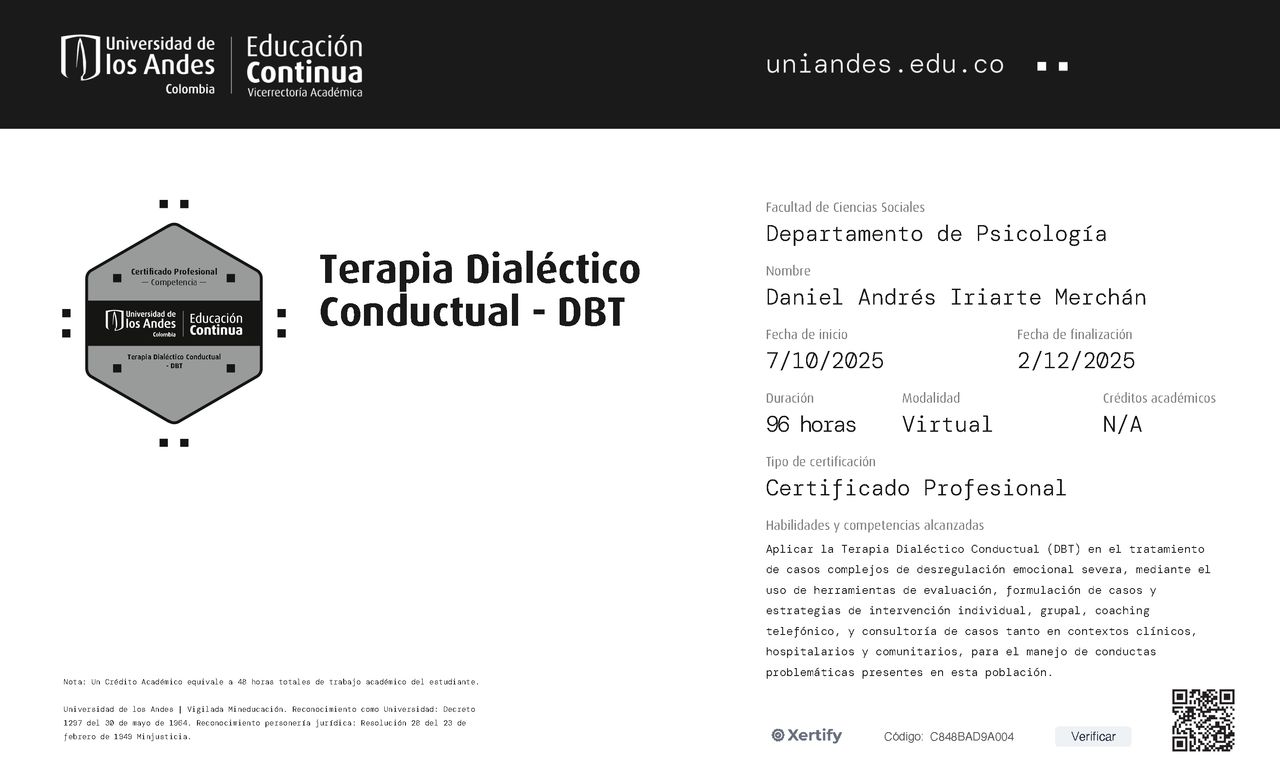 Es un profesional excelente, sus terapias tienen un sustento científico y tiene mucho conocimiento. He tenido muchos terapeutas con quienes he sentido que no tienen el bagaje necesario mientras que con Daniel me ha gustado mucho la terapia cognitivo conductual y me he sentido cómoda porque no juzga ni busca solo escuchar o tener la razón, participa activamente en la terapia y busca que logre comprender el porqué de algunos comportamientos o emociones.