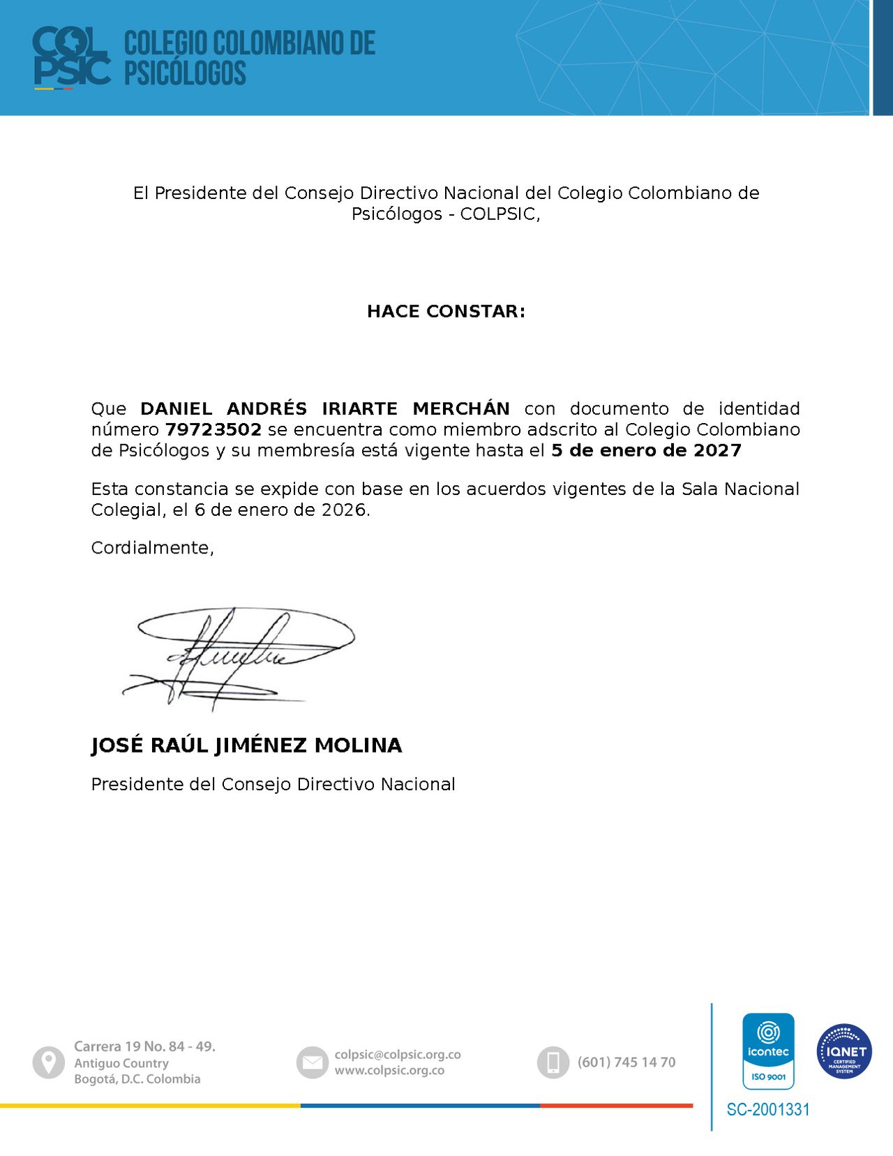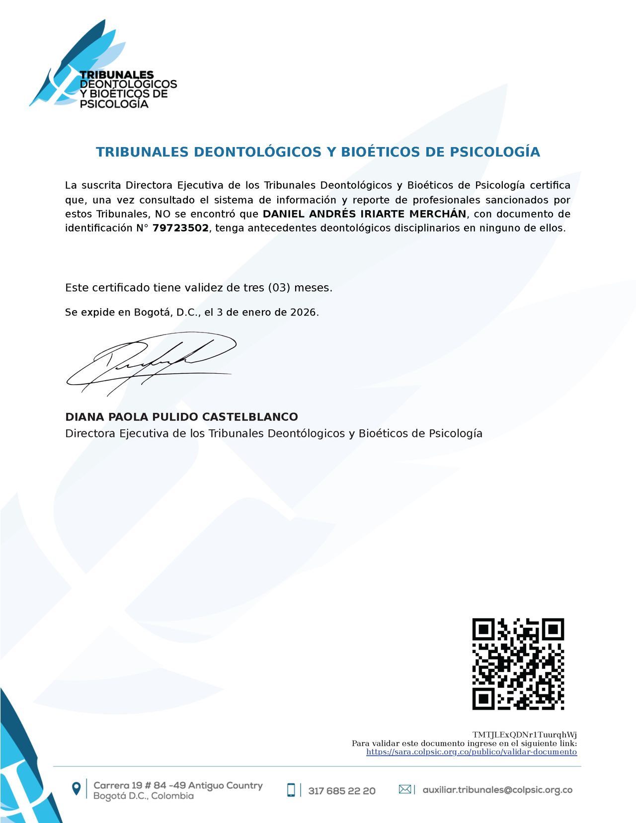 Altamente agradecida con el Dr.Daniel por su profesionalismo, empatía y compromiso, su acompañamiento ha sido fundamental para comprender y afrontar procesos personales.