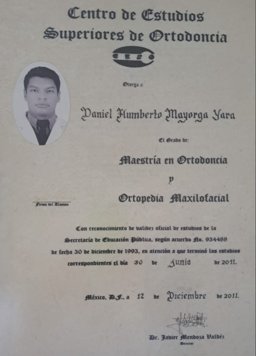 ¿Cuáles son las especialidades principales de Daniel Mayorga Yara?Daniel Mayorga Yara es Ortodoncista. Te mostramos algunos de los servicios que ofrece gracias a su trayectoria y su amplia experiencia: Blanqueamiento dental, Brackets de autoligado, Cirugía periodontal: colgajo abierto, Cirugía periodontal: Injerto de tejido blando, Exodoncia compleja de cordales, Extracción dental, Implante dental, Ortodoncia, Control Ortodoncia, Ortodoncia roth.