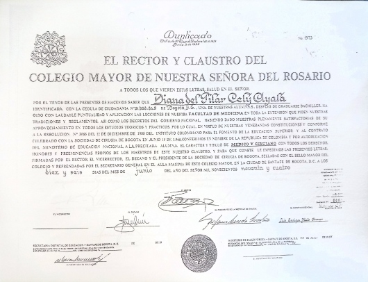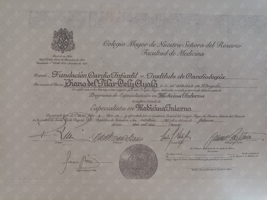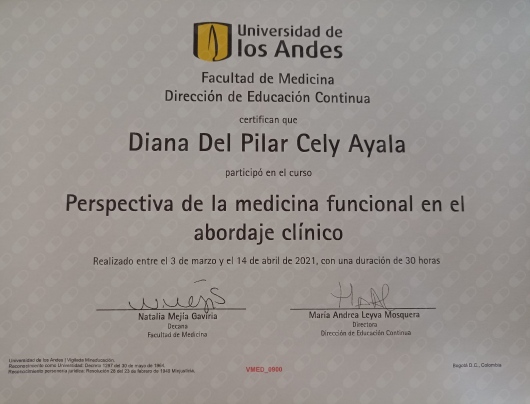 Dra. Diana Cely, Medico Internista con mas de 20 años de experiencia, egresada de la Universidad del Rosario, experta en manejo de patologías crónicas como Diabetes Mellitus, Hipertensión Arterial, Patología de Tiroides, Obesidad, Patología Digestiva, Artrosis y Patología Pulmonar.