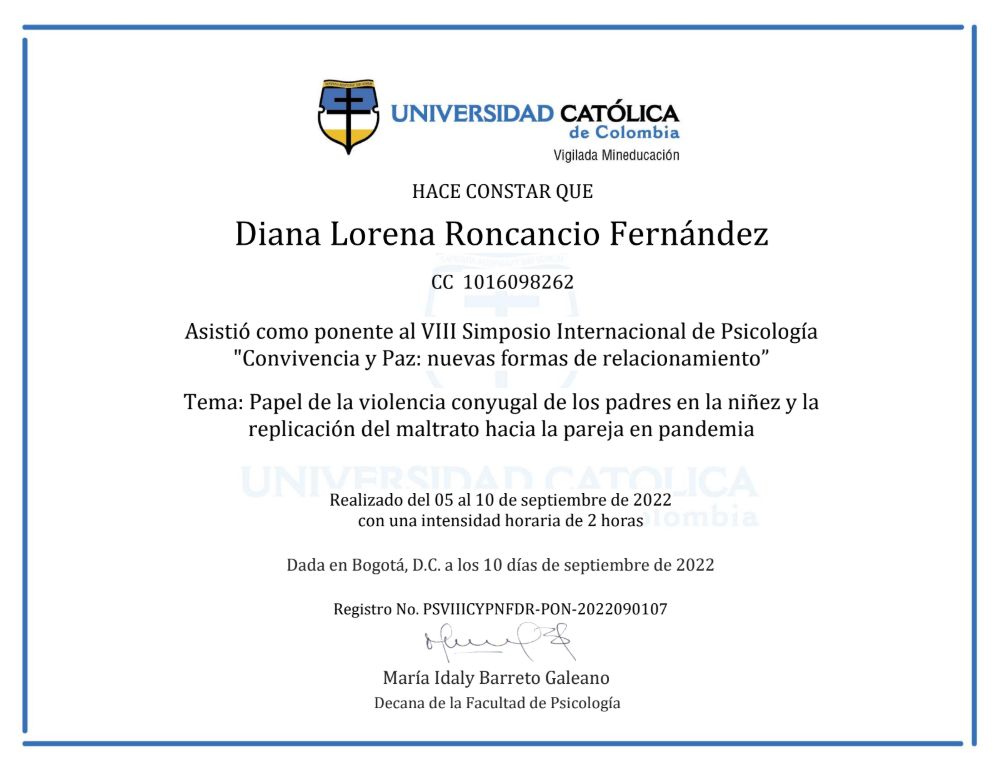 ¿Qué idiomas habla Diana Lorena Roncancio Fernández?Puedes comunicarte con Diana Lorena Roncancio Fernández en Español.