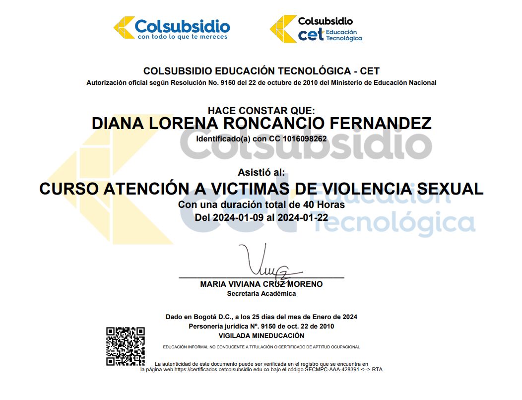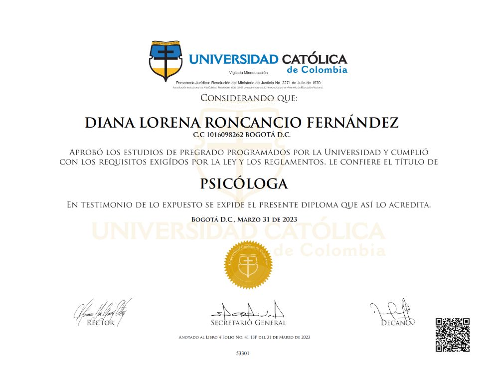 Hola, soy Diana Roncancio. Como psicóloga, mi propósito es acompañarte a recuperar tu equilibrio emocional en un espacio seguro y profesional.