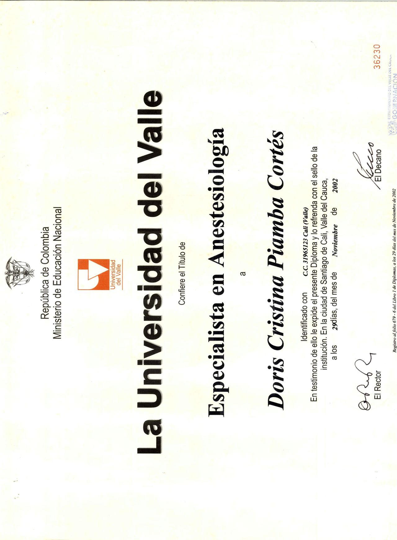 Dra. Doris Cristina Piamba Cortes