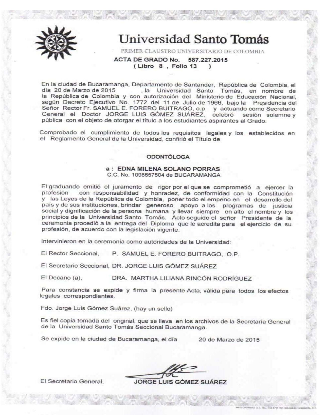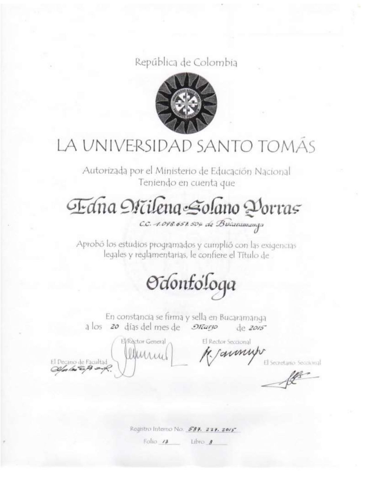 Odontóloga General egresada de la Universidad Santo Tomas con capacitación en Reconstrucción estética para alteraciones de difícil manejo en el sector anterior .