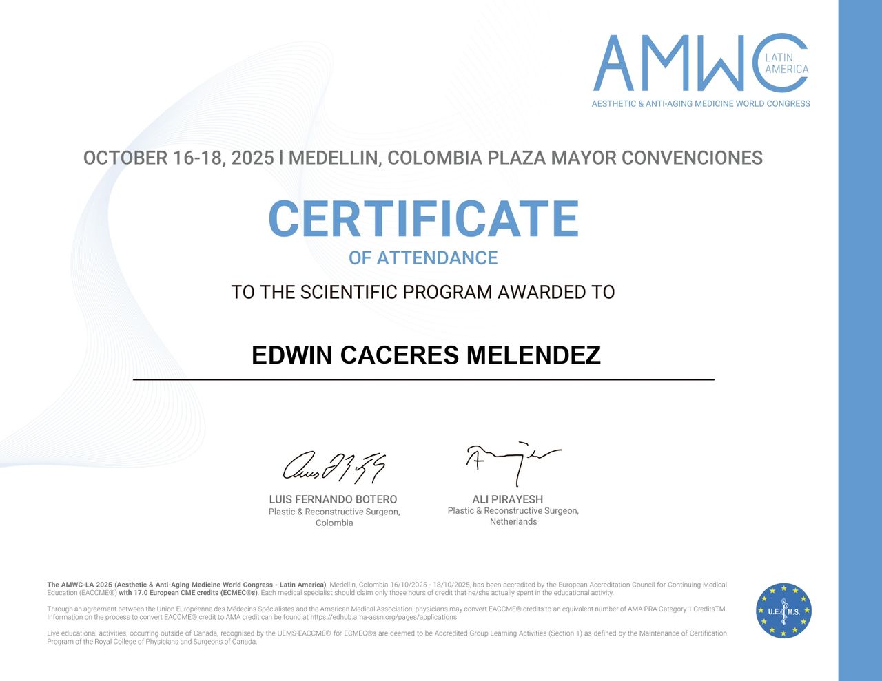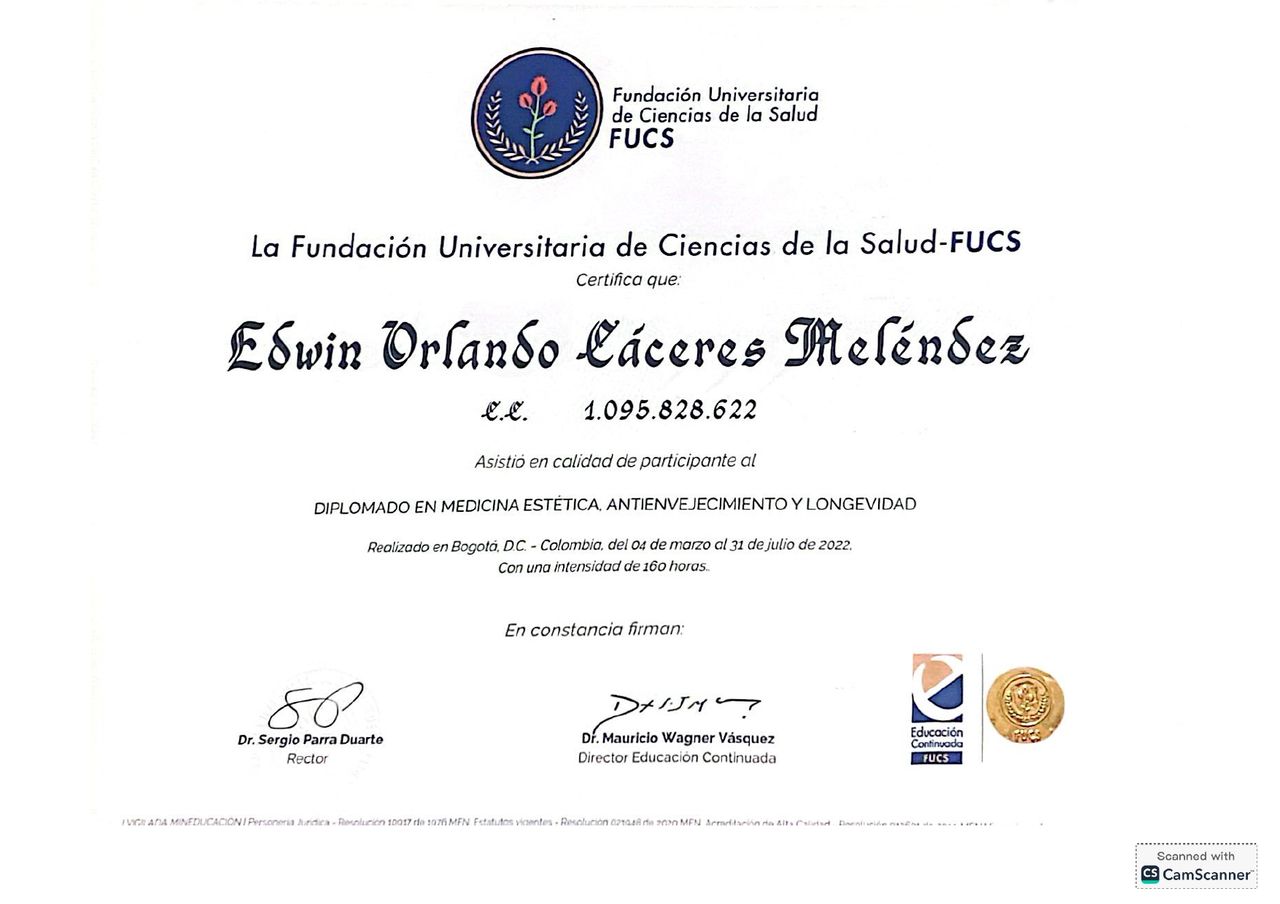 Soy médico cirujano de la Universidad Nacional de Colombia, con formación en medicina estética, miembro de la Fundación Universitaria de Ciencias de la Salud (FUCS) y de la Sociedad Internacional de Rejuvenecimiento Facial (SIRF)