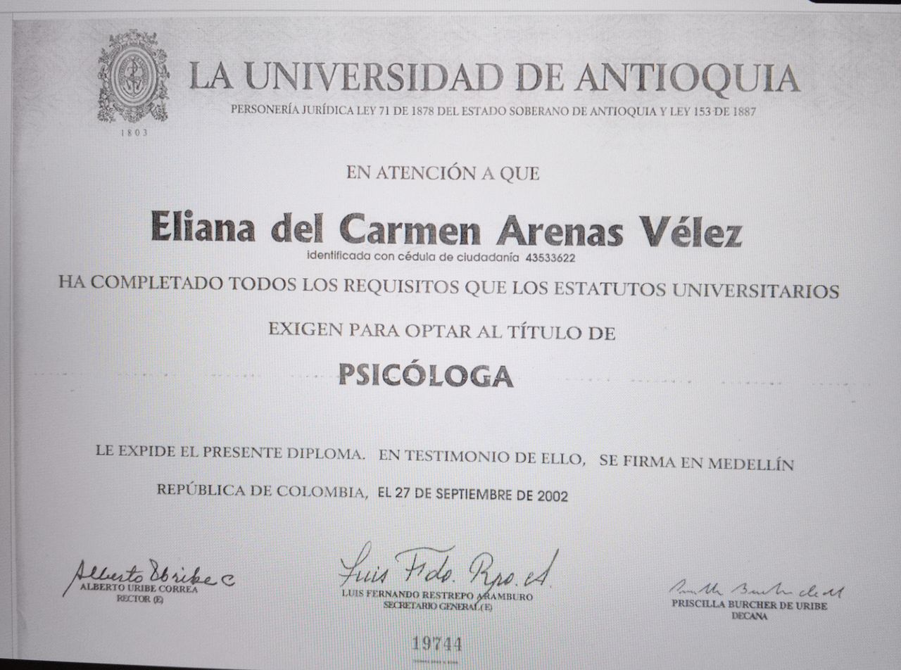 ¿Qué idiomas habla Eliana Arenas Vélez?Puedes comunicarte con Eliana Arenas Vélez en Español.