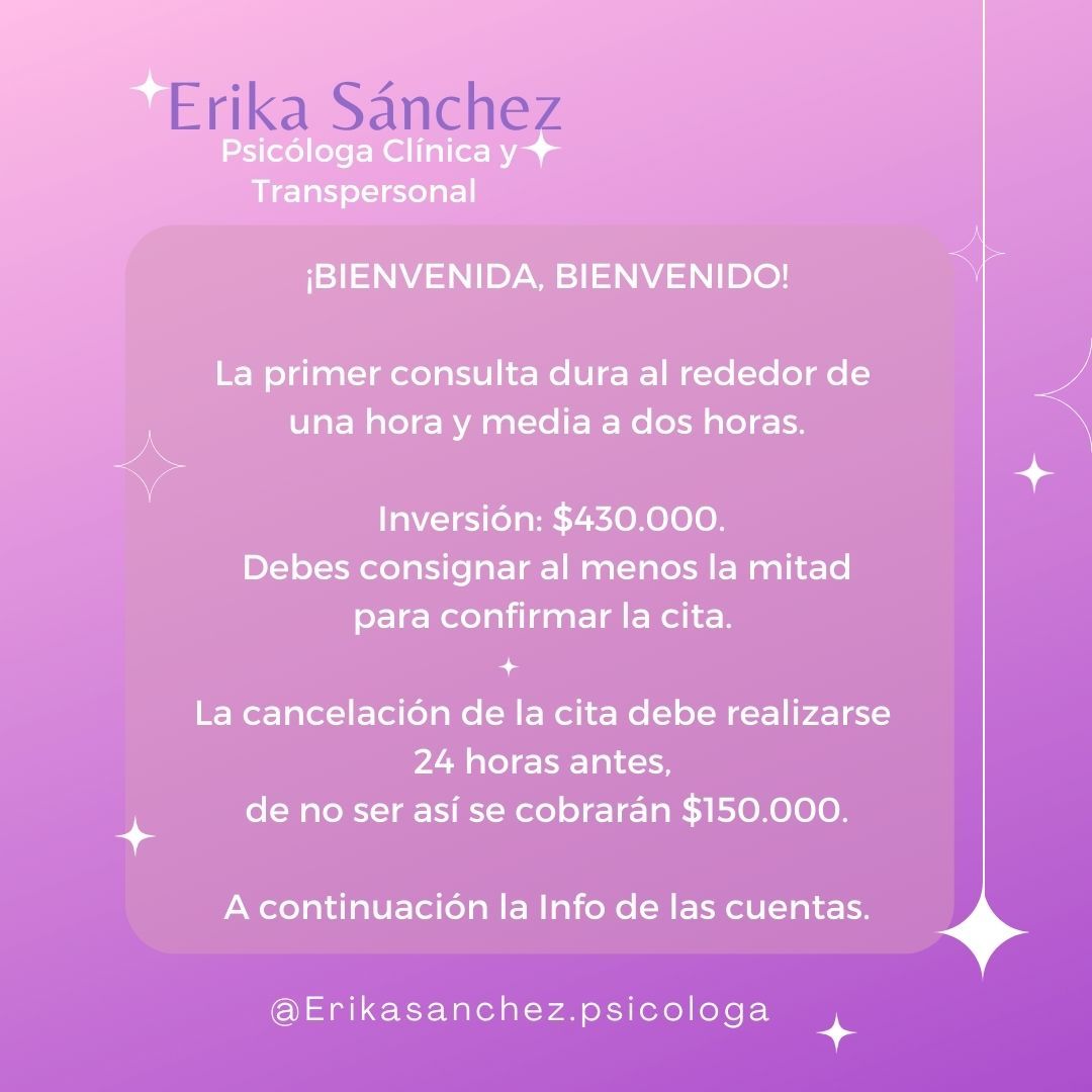 Erika es la profesional más humana entregada maravillosa que he conocido se conecta se sensibiliza se adapta literal es tu mejor aliada para aprender a vivir de una manera más llevadera