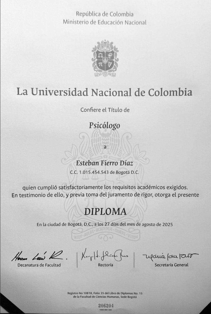 ¿Cuáles son las especialidades principales de Esteban Fierro Diaz?Esteban Fierro Diaz es Psicólogo. Te mostramos algunos de los servicios que ofrece gracias a su trayectoria y su amplia experiencia: Consulta psicológica online, Psicoterapia virtual, Sesión de psicoterapia, Capacitaciones empresariales, Meditación guiada, Tratamiento de hipnosis ericksoniana.