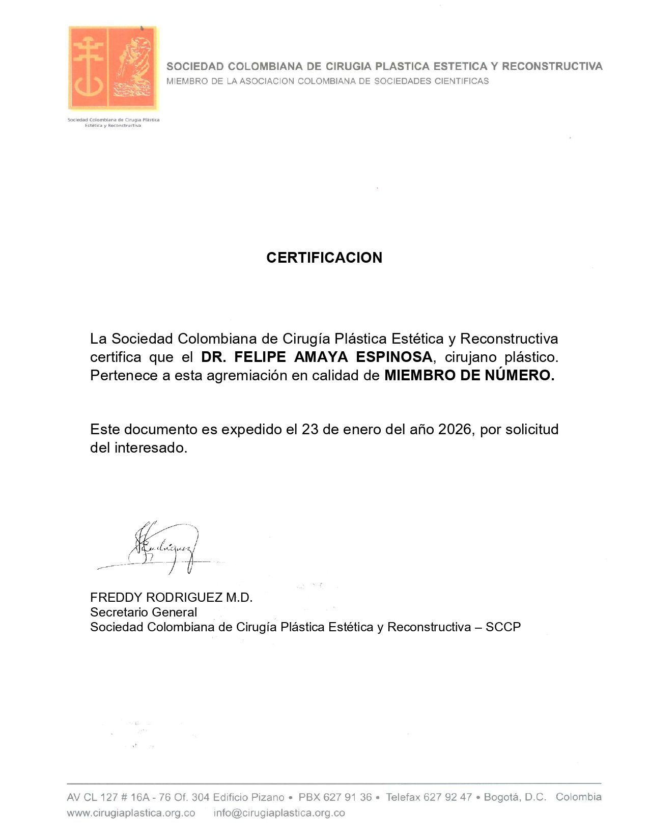 El Dr. Felipe Amaya es un cirujano excepcional. Su profesionalismo, experiencia y calidad humana se reflejan en un resultado natural y armónico que superó por completo mis expectativas.