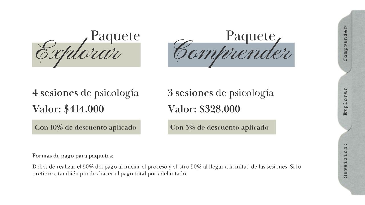 Pensando en quienes desean iniciar o continuar un proceso con mayor profundidad, ahora puedes acceder a paquetes de sesiones psicológicas que ofrecen beneficios especiales.