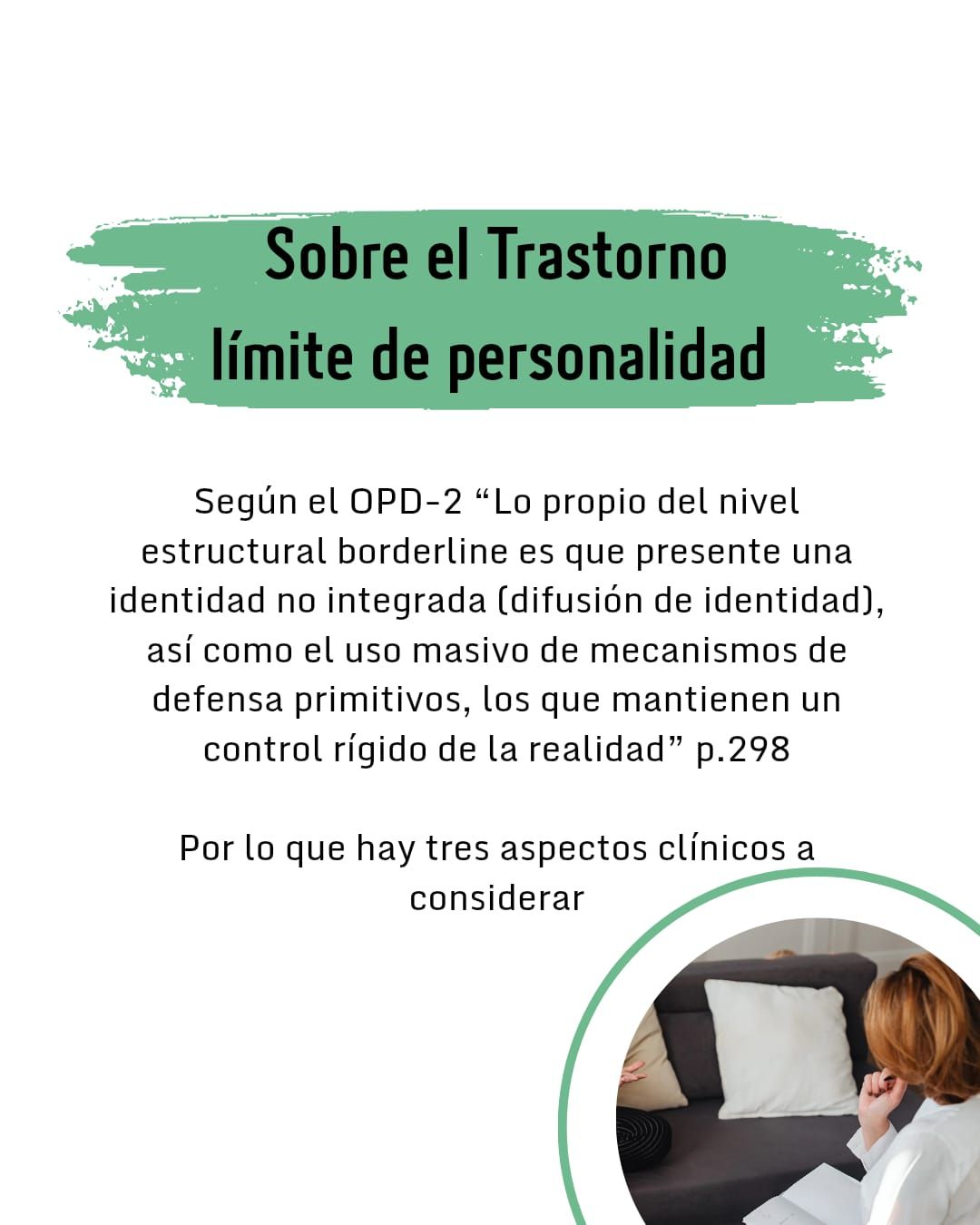 El trastorno Límite de la Personalidad (TLP), conlleva a alteraciones interpersonales: relaciones inestables, alteraciones en la identidad, sensación de vacío crónico.