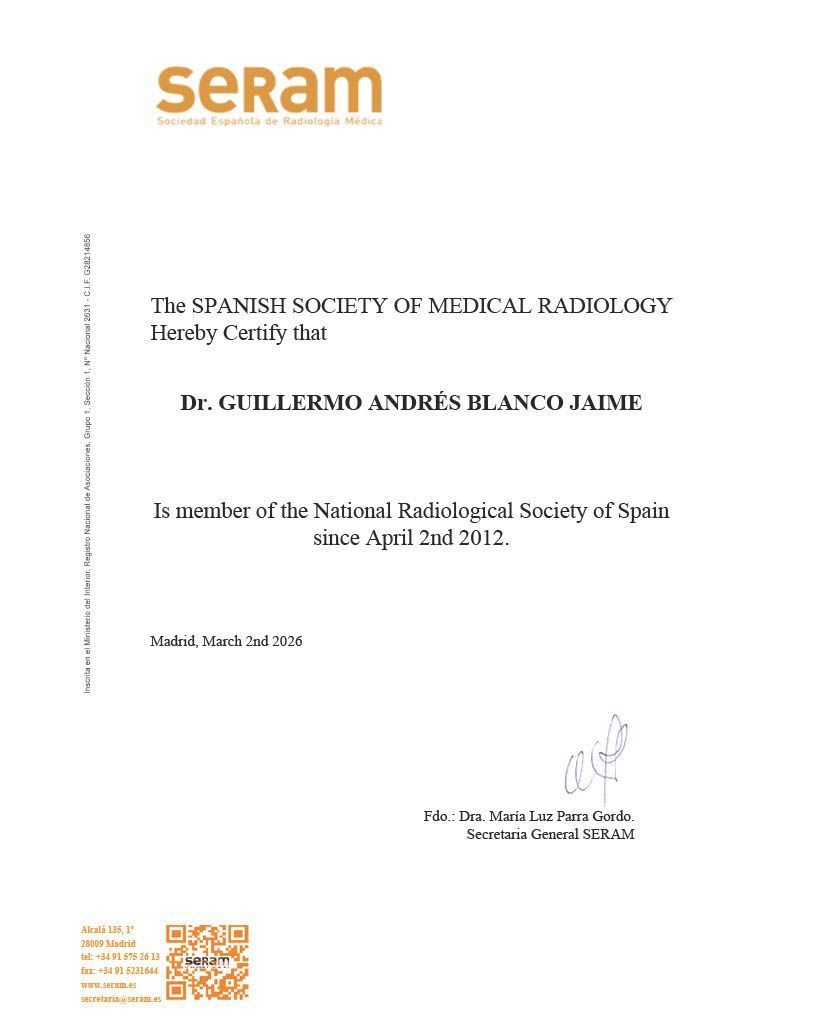 Hago parte del programa de re certificación médica de la Asociación Colombiana de Radiología el cual obliga a estar en permanente actualización de conocimientos.