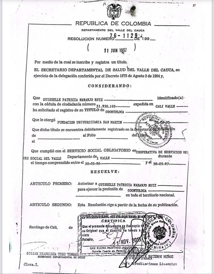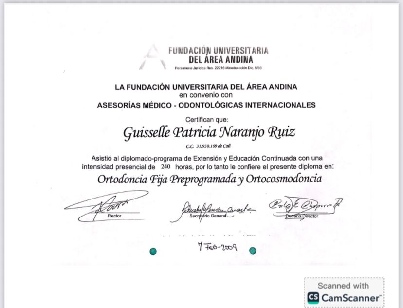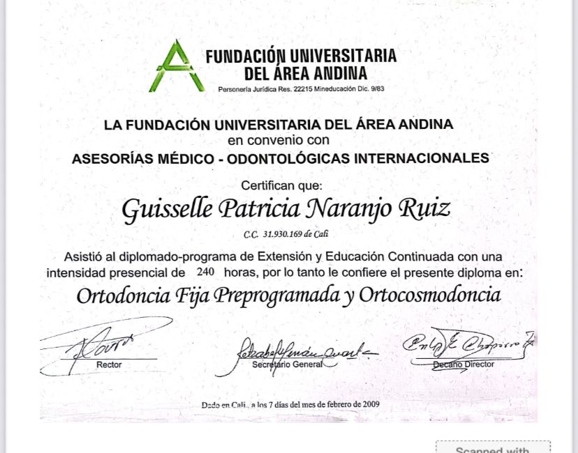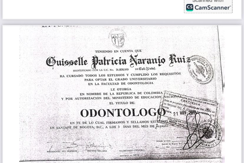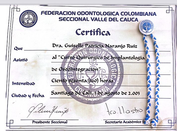 ¿Cuáles son las especialidades principales de Guisselle Patricia Naranjo Ruiz?Guisselle Patricia Naranjo Ruiz es Odontólogo. Te mostramos algunos de los servicios que ofrece gracias a su trayectoria y su amplia experiencia: Coronas en Zircon, Visita Odontología, Regenaración osea previa a la colocación de implantes, Blanqueamiento dental, Canal de raíz, Carillas dentales, Coronas dentales, Diseño de sonrisa, Implante dental, Ortodoncia.