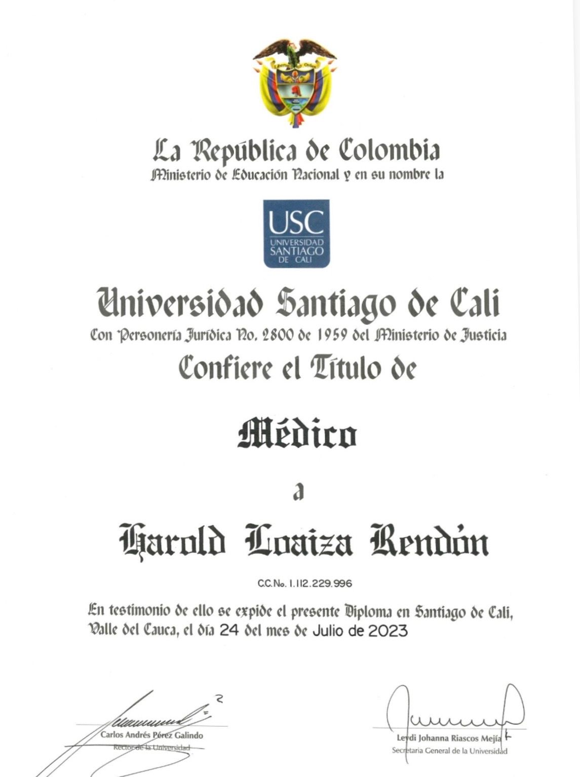 ¿Puedo hacer la visita con Harold Loaiza Rendon en línea, sin tener que desplazarme hasta su consultorio?Sí, Harold Loaiza Rendon ofrece consulta de forma remota. Solo tienes que seleccionar "consulta en línea" cuando vayas a reservar cita desde el calendario, y así podrás ver las fechas y horas disponibles.
