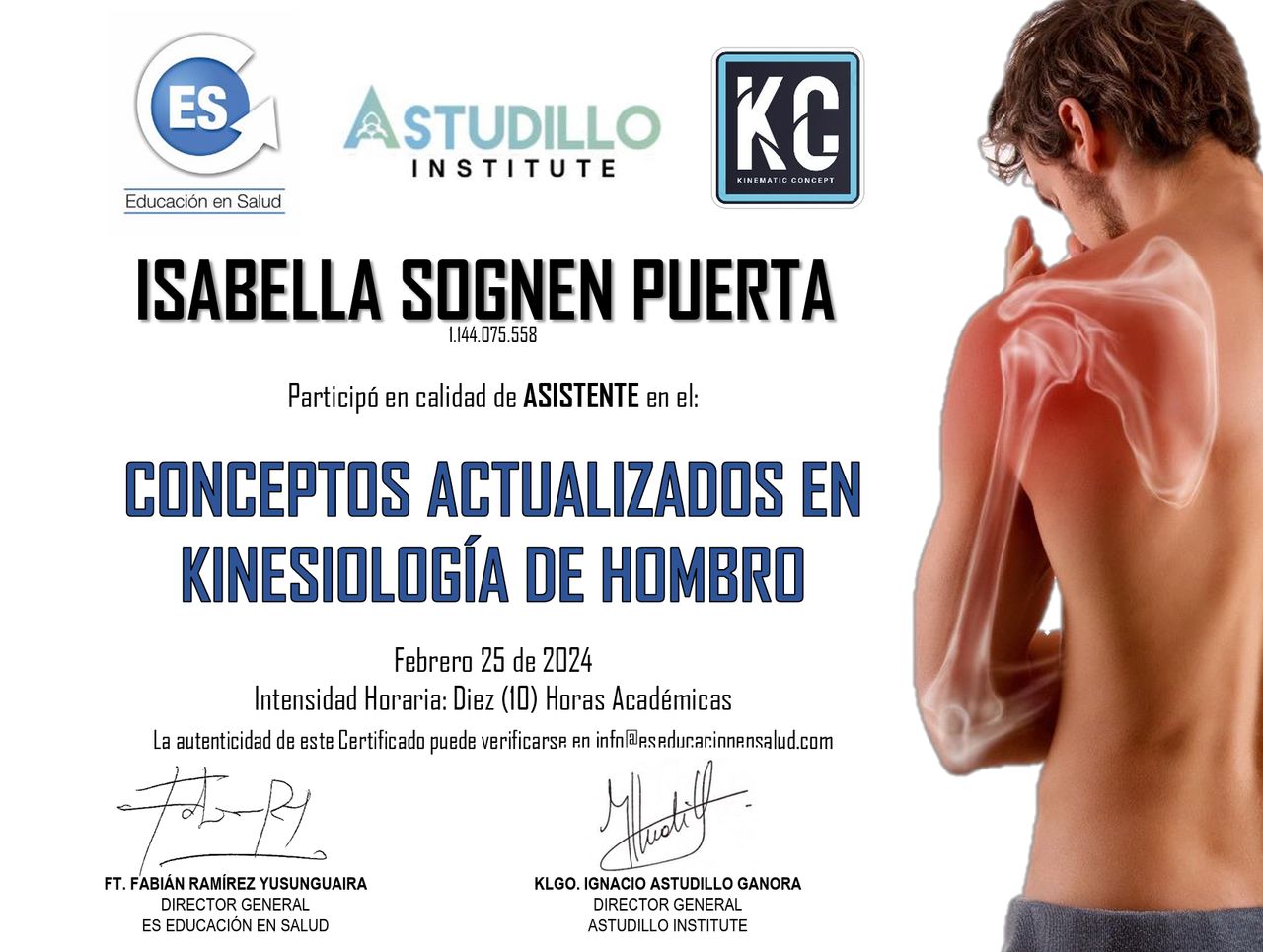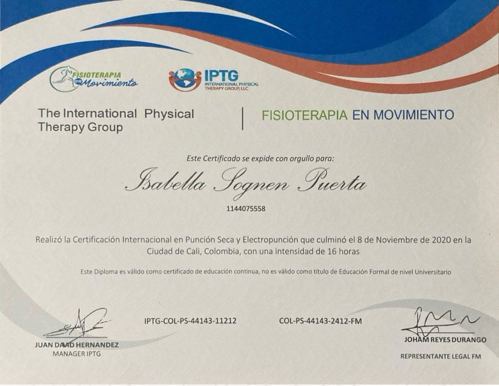 ¿Cuáles son las especialidades principales de Isabella Sognen Puerta?Isabella Sognen Puerta es Fisioterapeuta. Te mostramos algunos de los servicios que ofrece gracias a su trayectoria y su amplia experiencia: Consulta en línea, Consulta Fisioterapia, Visita domiciliaria Fisioterapia, Masaje terapéutico, Acondicionamiento Físico, Descarga de cuerpo completo, Consulta en Linea Terapia Física, Rehabilitación integral de dolor agudo subagudo y crónico, Programa de acondicionamiento físico.