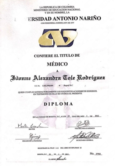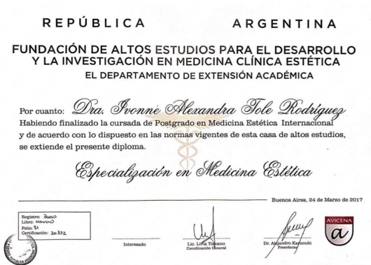 ¿Cuáles son las especialidades principales de Ivonne Alexandra Tole Rodriguez?Ivonne Alexandra Tole Rodriguez es Médico general. Te mostramos algunos de los servicios que ofrece gracias a su trayectoria y su amplia experiencia: Visita Medicina Estética, Inyecciones de toxina botulínica, Rejuvenecimiento facial, Rejuvenecimiento facial láser, Rinomodelación, Radiofrecuencia facial o corporal, Lifting facial no quirúrgico con hilos tensores, Lifting facial no quirúrgico con hilos tensores y colágenos, Consulta en línea.