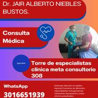 ¿Cuándo podría tener una cita con Jair Alberto Niebles Bustos?Ahora mismo Jair Alberto Niebles Bustos no tiene horas disponibles, ya que su agenda está llena para las próximas semanas. Te recomendamos contactar a Jair Alberto Niebles Bustos por si se libera algún espacio o si deseas pedir una cita para más adelante.