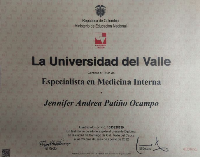 Soy médica de la U. de Caldas, especialista en medicina interna de la Universidad del Valle, dedicada a la atención del adulto, desde la prevención de la enfermedad, hasta el diagnóstico preciso y tratamiento de patologías tanto raras como frecuentes en la población, aplicando la evidencia científica disponible.