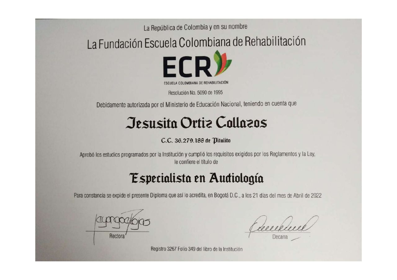 ¿Cuáles son las especialidades principales de Jesusita Ortiz Collazos?Jesusita Ortiz Collazos es Fonoaudiólogo. Te mostramos algunos de los servicios que ofrece gracias a su trayectoria y su amplia experiencia: Extracción de cerumen, Evaluación y terapia vestibular, Acufenometria - Tinnitus, Adaptación de audifonos, Adaptación de prótesis auditivas, Imitancia acústica (impedanciometria), Lavado de oídos, Visita Fonoaudiología, Audiometría, Elaboración de protectores auditivos para el ruido y piscina.