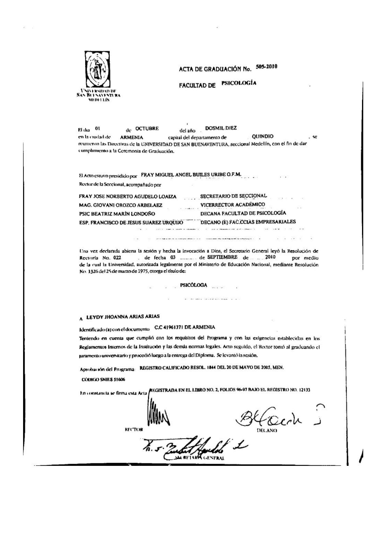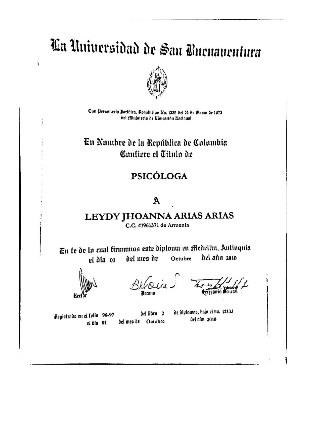 Núm. Colegiado: 117192 Colegio Colombiano de psicología