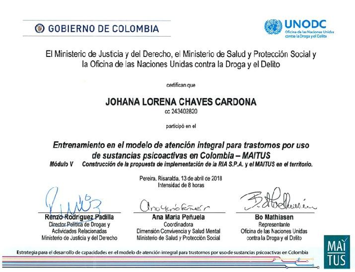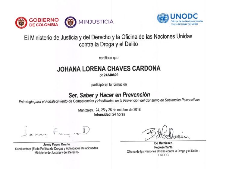 • Psicóloga Especialista Adicciónes Johana Lorena Chaves • Asesoría psicológica y psicoeducación •